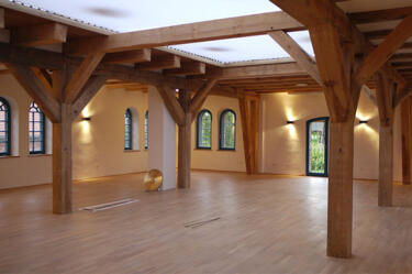 The Breitenteicher Mühle is located in a nature reserve next to the biosphere reserve Schorfheide-Chorin, 90 km north of Berlin. A holistic approach played a decisive role in the planning and conversion of the historic mill into a retreat center. The mill building was restored under consideration of the protection of historical monuments using regionally usual ecological building materials. Green electricity is generated by the water power of the river Welse using a water wheel with generator. The farm's own water supply and ecological wastewater treatment ensure that it can also exist independently of other suppliers. Overall, the property has a positive energy balance.