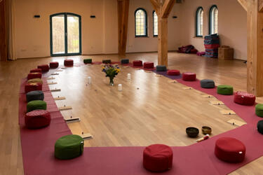 The seminar house within this beautifully restored water mill provides a sanctuary for workshops and retreats focused on personal growth and development, offering a peaceful space for deep concentration and transformative mind-body practices.